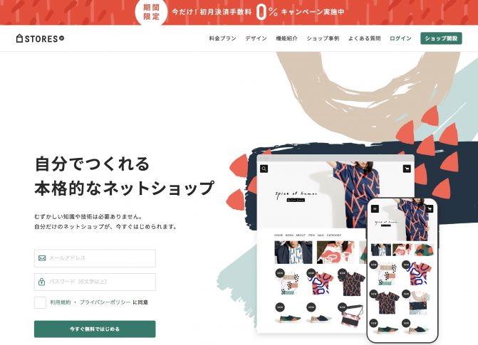 STORES.jpとは誰でも無料で、本格的なネットショップが開設できるサービスです。