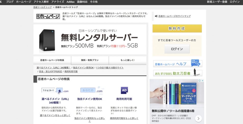 - 16.忍者ホームページ→Web知識がある方向けのホームページ作成ソフト・ツール