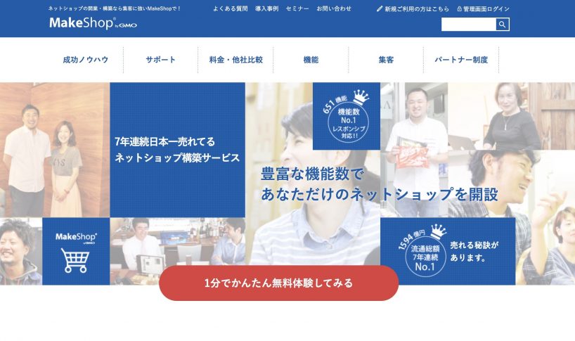 Makeshopは、7年連続で日本一売れているネットショップ構築サービスになります。
