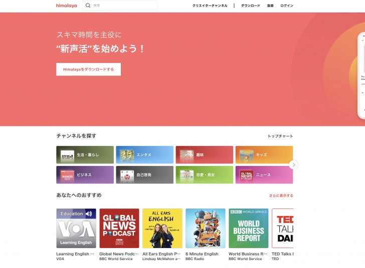 ヒマラヤ(Himalaya)はスキマ時間に、いろんなコンテンツを音声で聞いて学習できる”無料音声アプリ”です。このヒマラヤ(Himalaya)は中国発ではなんとユーザーは5億人ほどの利用数を誇っています!