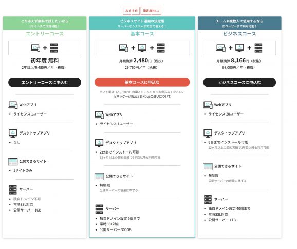 ■エントリーコース→とにかく無料で安くサイトが作りたい!