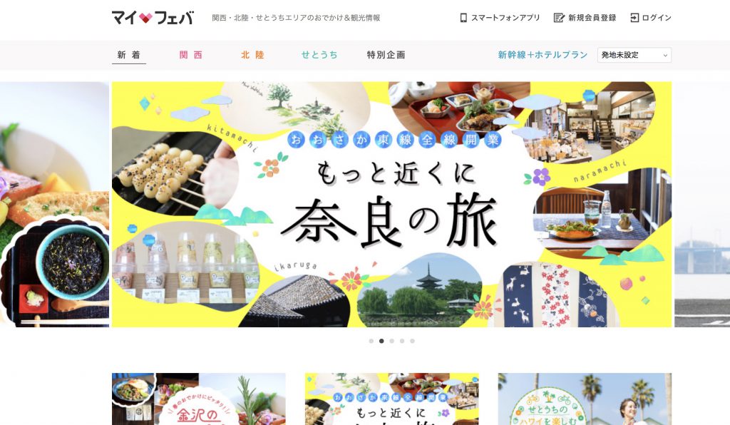 関西・北陸・せとうちエリアの観光情報を提供している『マイフェバ』というポータルサイトで。ランチやホテル、イベント、スポット等を紹介しています。