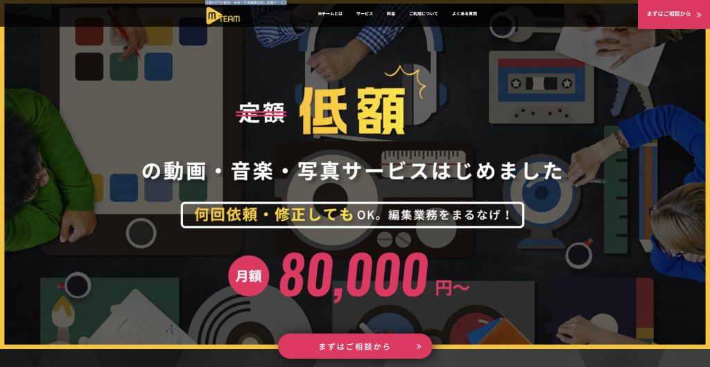 Mチーム:月額8万円の動画・音楽・写真編集依頼し放題サービス