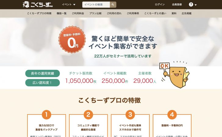 その点、こくちーずプロは検索エンジンが最適化されたつくりになっているので、より多くの方に、セミナー・イベントの告知ができるようになります。
