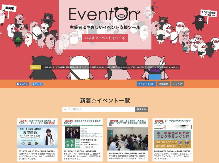 イベントンは、他のサイトに比べて『イベントの主催者側』に寄り添った機能をもつ告知サイトです。
