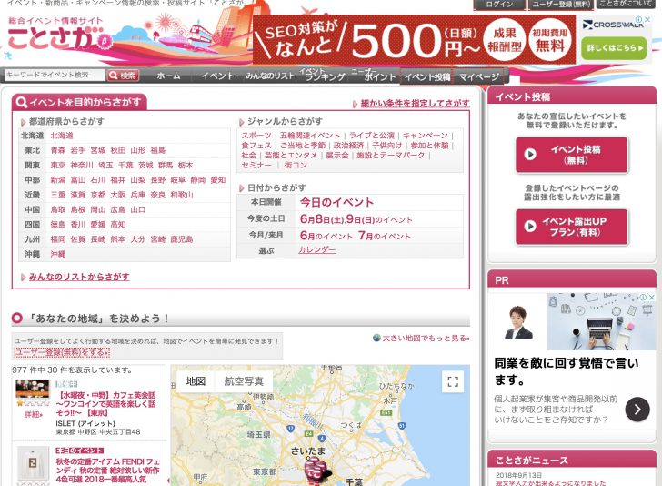 『ことさが』は、総合イベント情報サイトで、北海道から沖縄まで、全国各地のイベントや新商品の情報を紹介しているポータルサイトです。