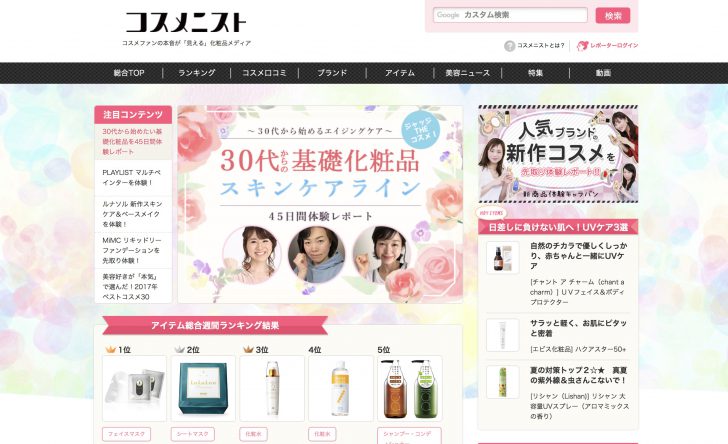 これまで紹介してきたもの比べると、コスメ商品を情報を紹介するほうがメインですが、口コミランキングもあります。