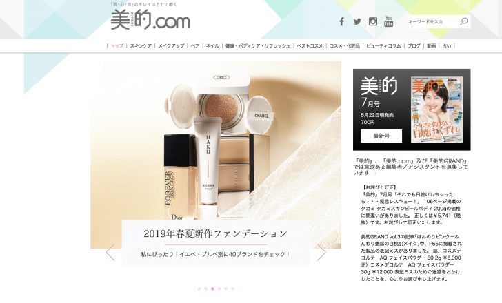 最後におまけとして、口コミサイトではないですが、『美的.com』という、コスメファンからしたらかなり有名な美容ニュースサイトをご紹介します。