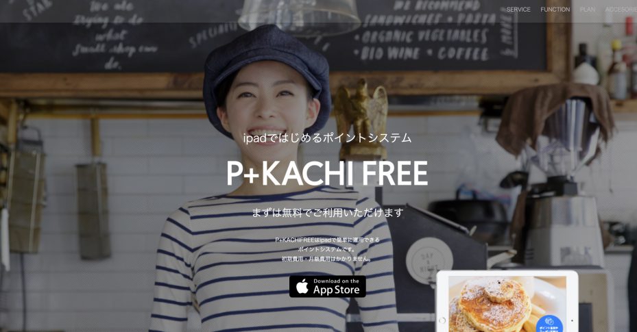 P+KACHIFREEは、ipadを持っていれば、初期費用・月額費用ともに無料(フリープラン)で始められる『ポイントシステムアプリ』のサービスです。