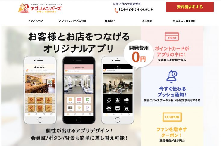 アプリメンバーズはオリジナルアプリを作成できるサービスです。