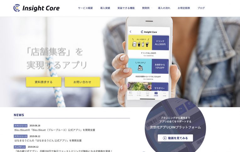 Insight Coreは「店舗集客」を実現する、集客に特化した店舗アプリです。