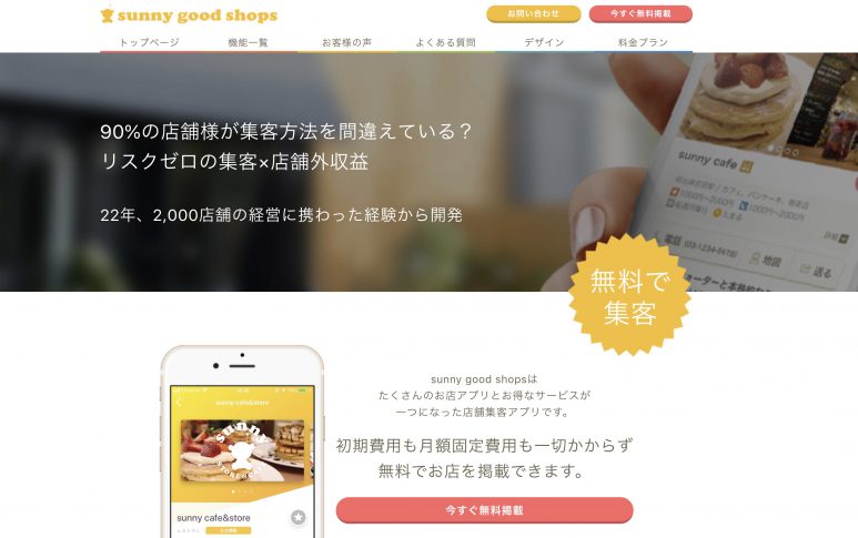 sunny good shopsを紹介する記事をご用意しています。参考にしてください→sunny good shopsとはどんな集客アプリ?【費用、メリット、機能まとめ】