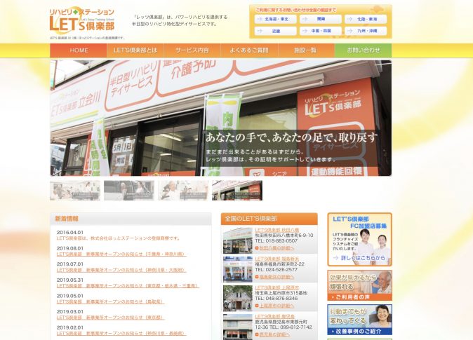 レッツ倶楽部は、全国に120事業所(直営・FC施設含む)を展開している、半日型のデイサービス施設です。