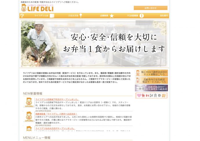 ライフデリは高齢者に対してお弁当の宅配(配食サービス)を行なうサービスを提供しています。