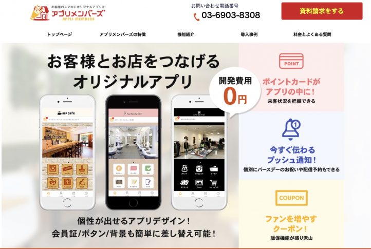 アプリメンバーズは、集客や販促をサポートする”オリジナルアプリ”作成サービスです。