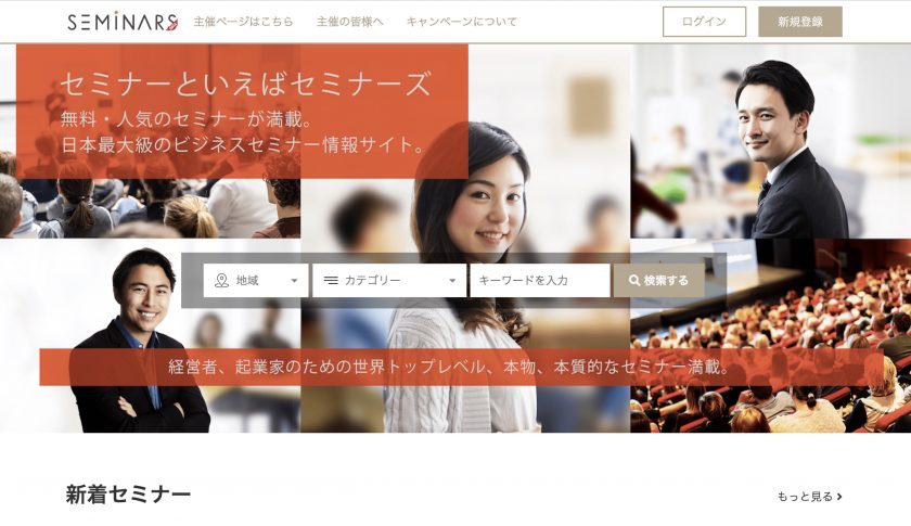 セミナーズはビジネスセミナー、コーチング、研修、講演会等『日本でNo.1』と言われるほど、数多くのセミナー情報を掲載数しているポータルサイトです。