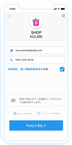 Paidyは「メールアドレス」と「電話番号」を入力してしまえば、ワンクリックで決済は完了するので、すぐに買い物をしたい方にはとても便利な決済サービスです。