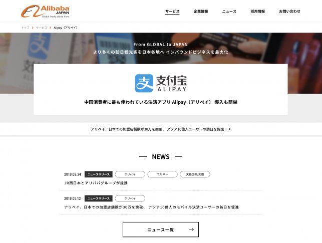 なお、アリペイは世界最大のIT企業アリババグループが提供するサービスで、2004年12月に中国にて開始しました。