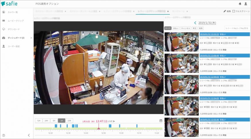 機能としてはレジの様子を24時間“映像”として録画し、データをいつでもチェックすることができます。