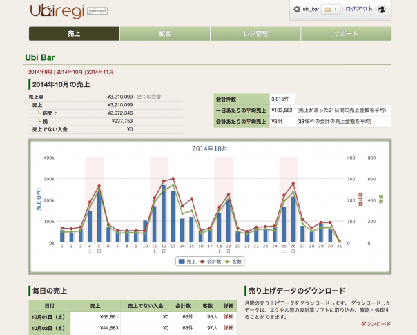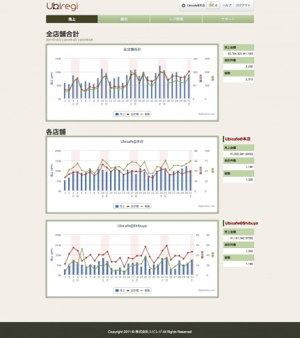 ユビレジは、管理画面上よりリアルタイムで売上を確認することができます。